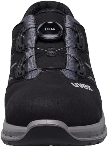 Sicherheit steht bei uns an erster Stelle: Die Schuhe sind mit einer durchtritthemmenden Stahlzwischensohle und einer robusten Stahl-Zehenkappe ausgestattet, die Ihre Füße vor schweren Objekten und scharfen Gegenständen schützen. Darüber hinaus sorgt die stabilisierende uvex anti-twist-Hinterkappe dafür, dass das Umknicken zuverlässig verhindert wird – ideal für anspruchsvolle Arbeitsumgebungen.