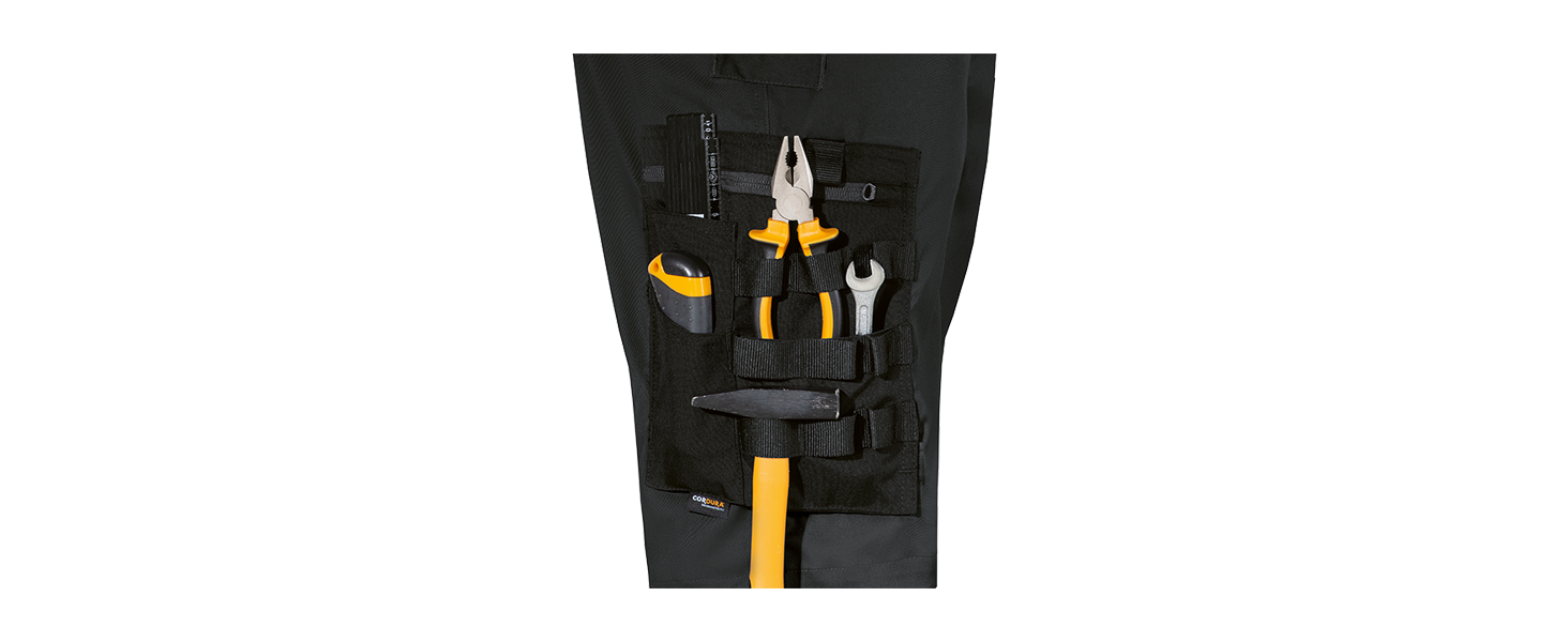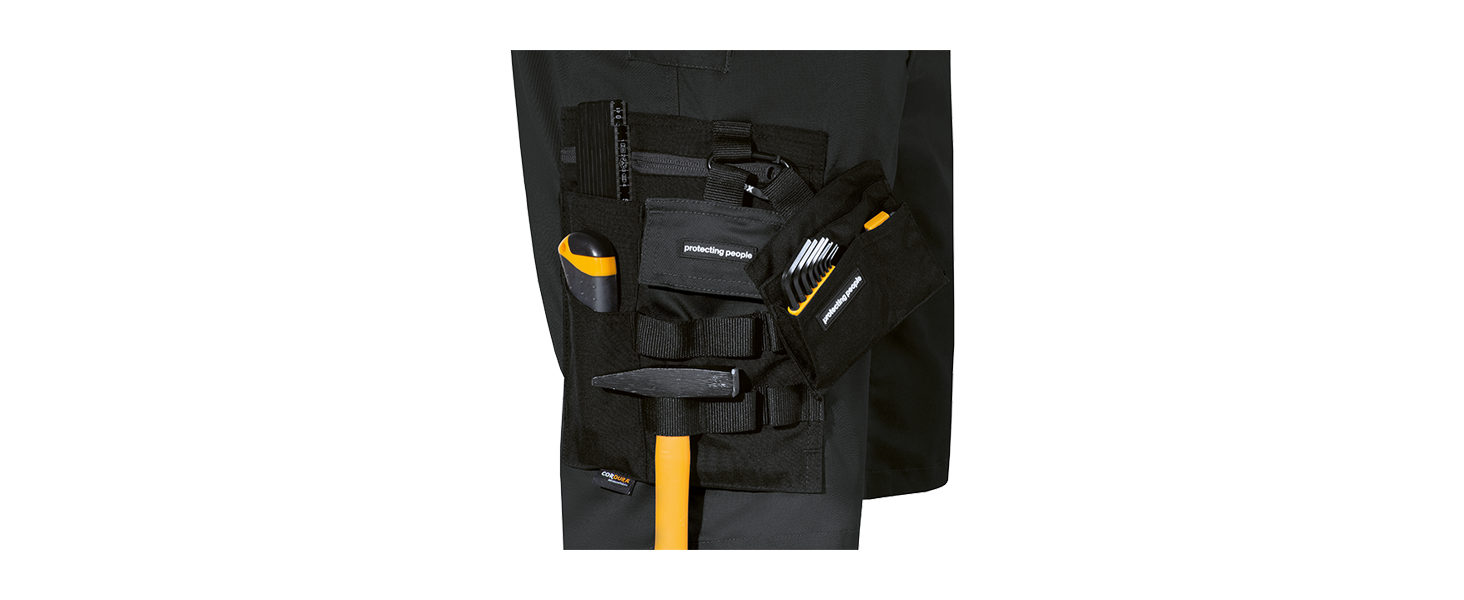 Die Arbeitshose bietet eine Vielzahl an funktionalen Taschen, die strategisch platziert und individuell anpassbar sind. Mit einem robusten Tape ausgestattet, ermöglichen diese Taschen ausreichend Stauraum für alle wichtigen Utensilien – egal ob Werkzeuge, Mobiltelefon oder Maßstab. So haben Sie stets alles Wichtige griffbereit, ohne die Bewegungsfreiheit einzuschränken.